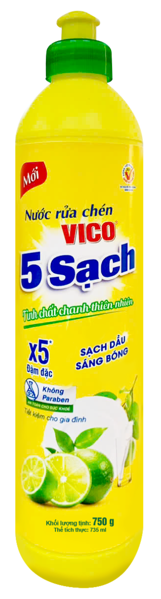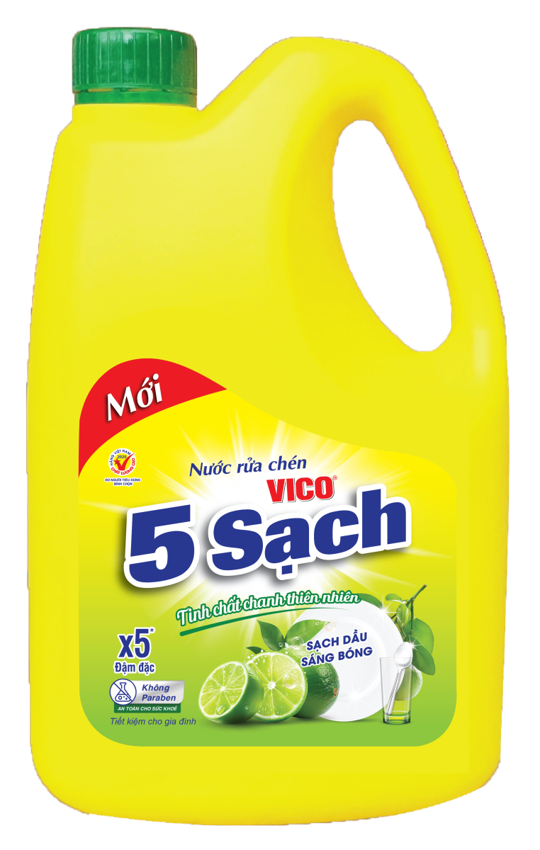 -Nước rửa chén VICO 5 SẠCH được làm từ tinh chất chanh thiên nhiên với đặc tính đậm đặc gấp 5 lần giúp làm sạch mọi vết bẩn cứng đầu trên ly, chén, đĩa… mà chỉ cần một lượng nhỏ nước rửa chén. Khử sạch đến 5 loại mùi khó chịu: mùi tanh hải sản, mùi tỏi phi, mùi mắm tôm, mùi dầu mỡ khét, mùi thức ăn thiu… ngay cả trên đồ nhựa. Hương chanh dịu nhẹ mang lại cảm giác tươi mát mỗi khi sử dụng, bảo vệ da tay, thân thiện với môi trường.